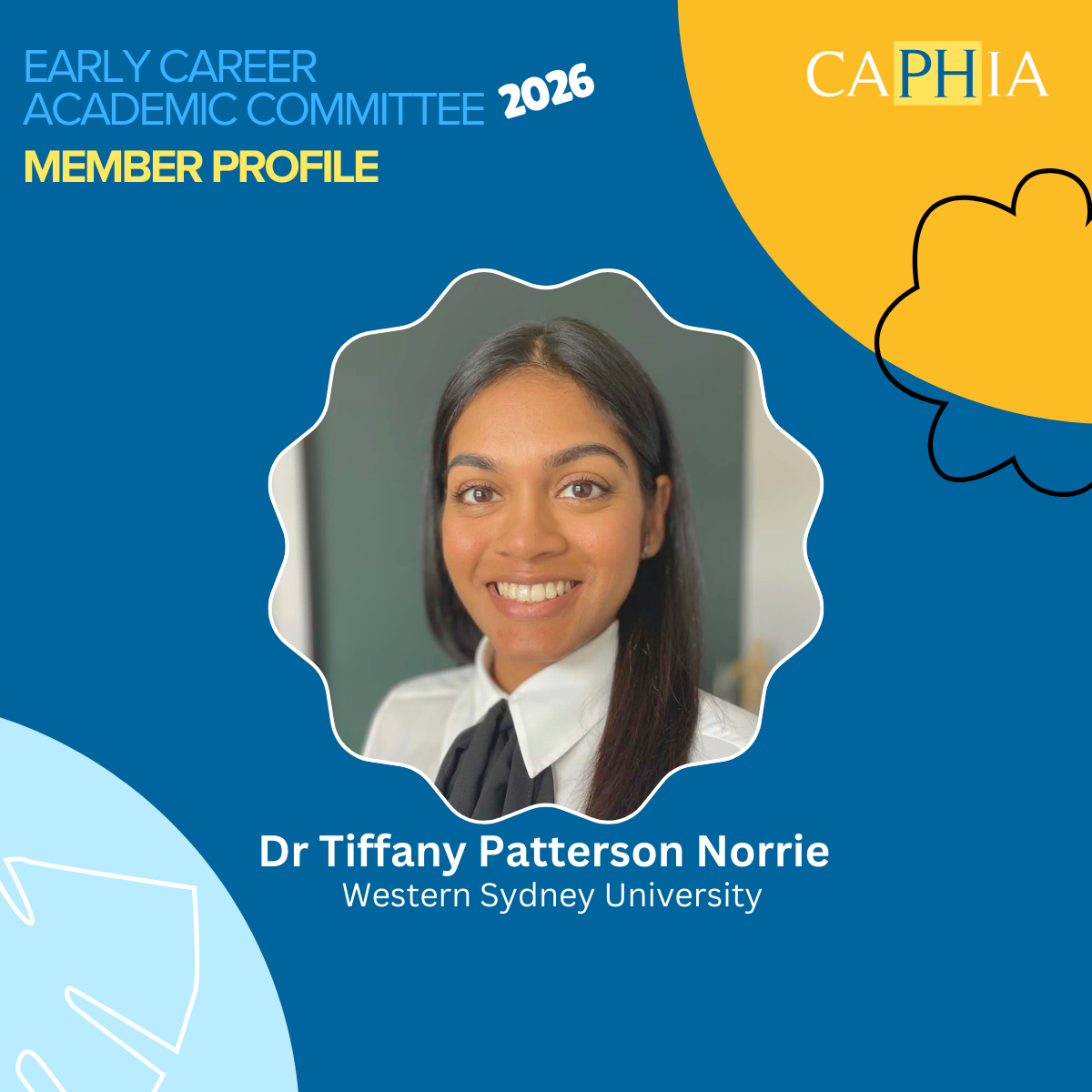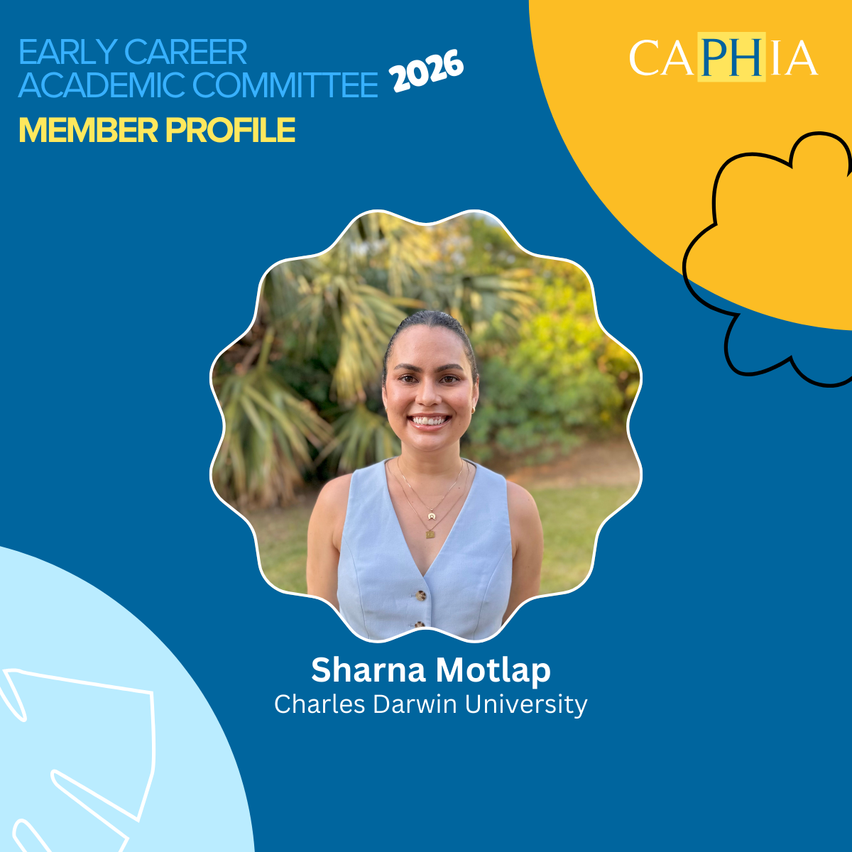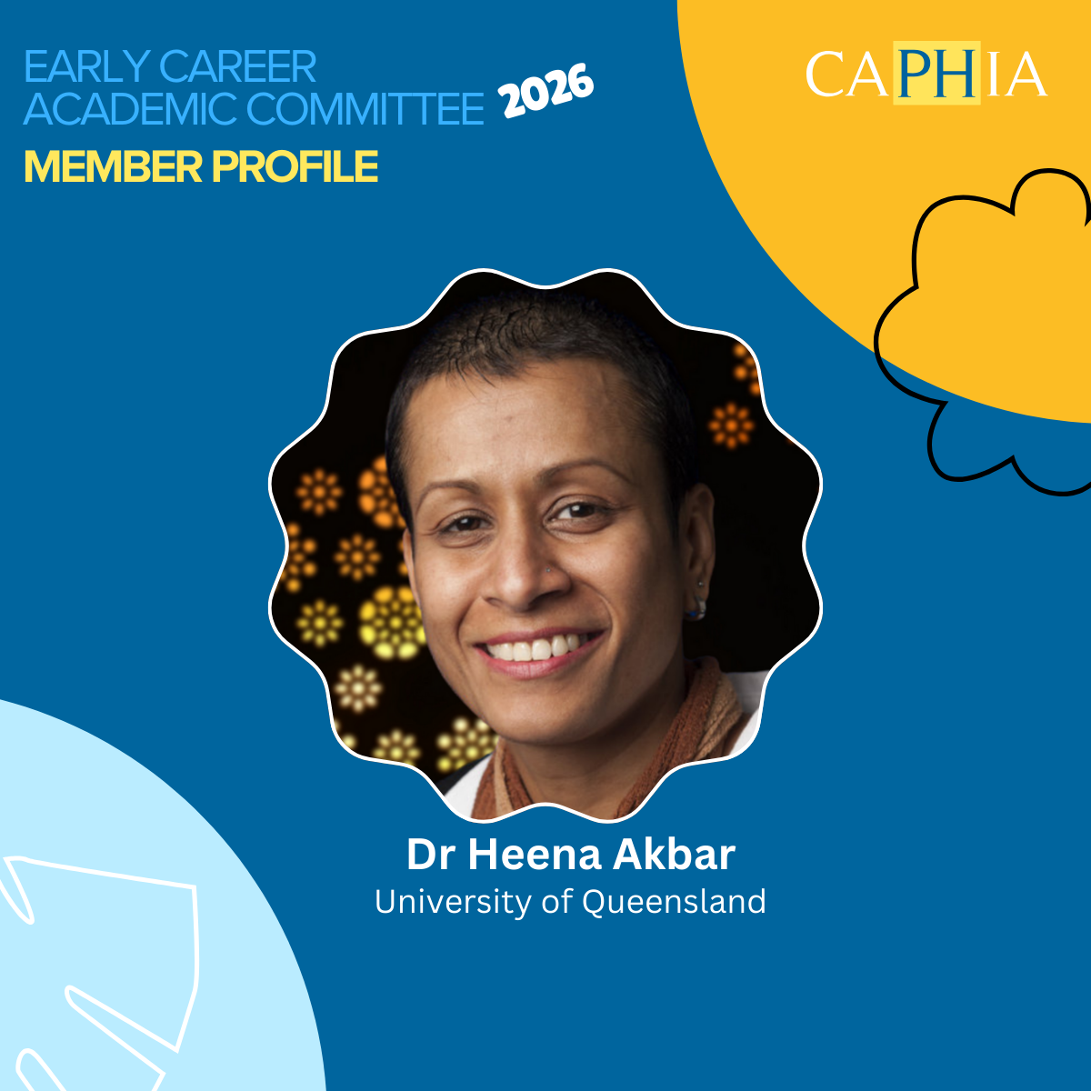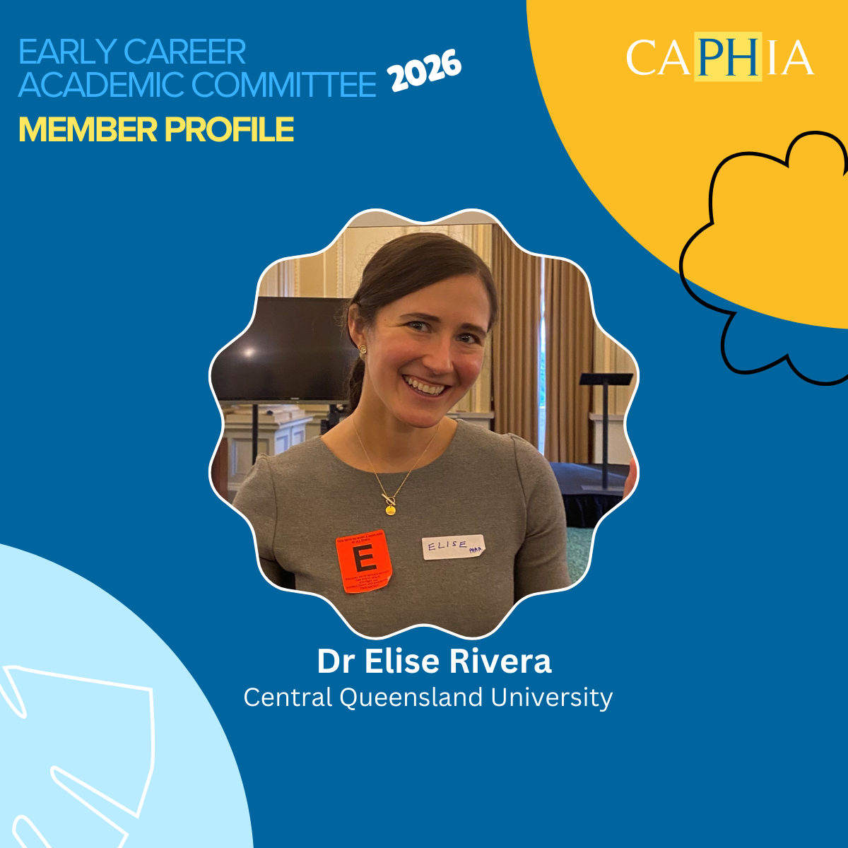 The CAPHIA Early Career Committee comprise members from across Australasia and works to develop and deliver programs and events to support early-career academics (ECA) postgraduate and higher degree research (HDR) students in public health and early career public health professionals.